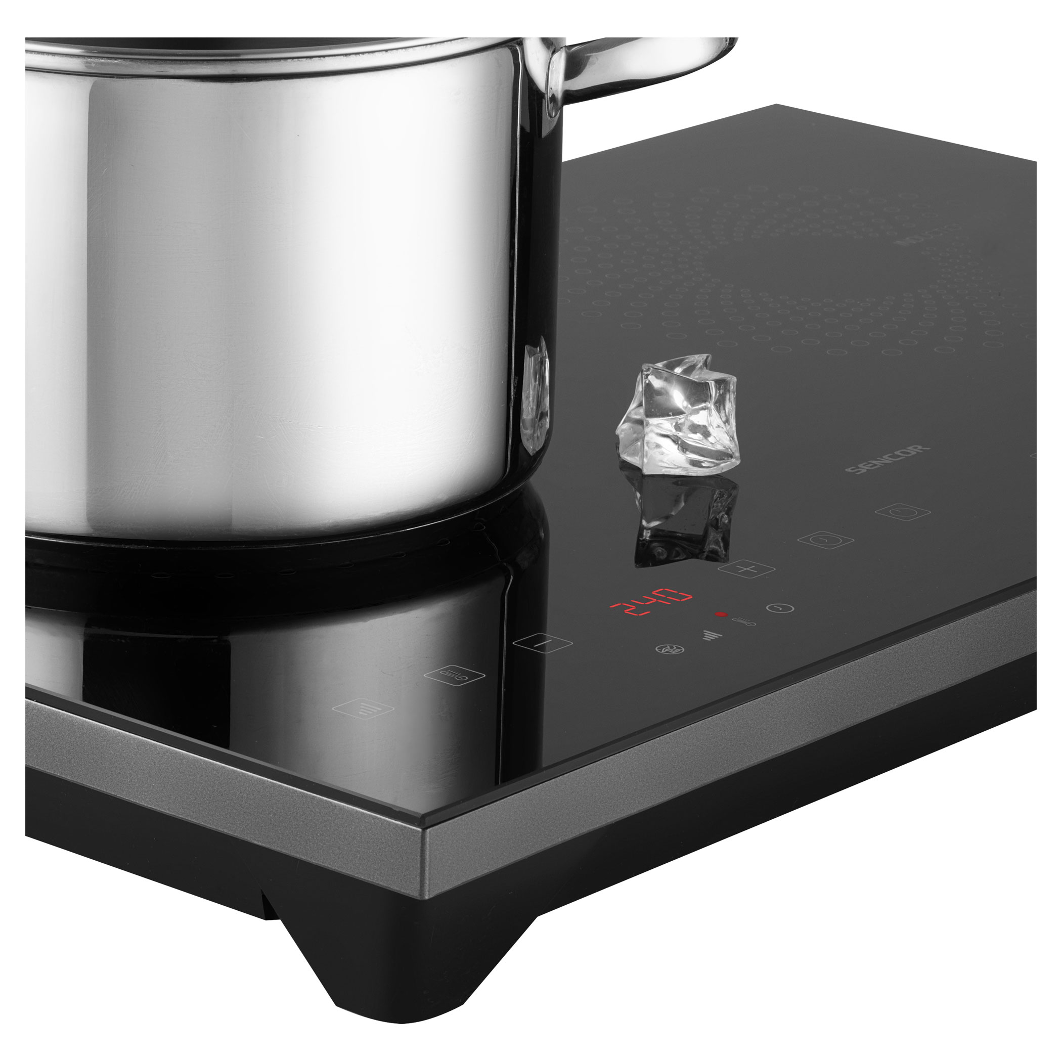يتم التحكم في الموقد والوظائف الفردية باستخدام أزرار لمسية. شاشة LCD ذات إضاءة خلفية حمراء كبيرة توفر معلومات حول درجة الحرارة والطاقة.