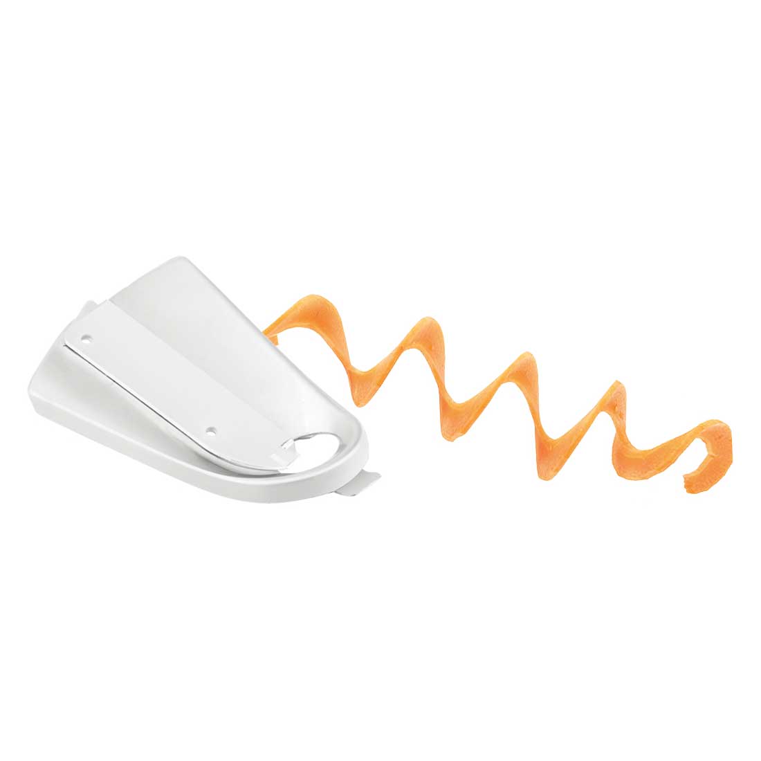 مصممة بوعاء لتجميع الشعرية بسعة كبيرة لتبسيط إضافة الحلزونات إلى المكونات الأخرى. تستخدم أداة الدفع وأنبوب التلقيم لإدخال الخضروات إلى الشفرة لتحقيق نتيجة مثالية.
