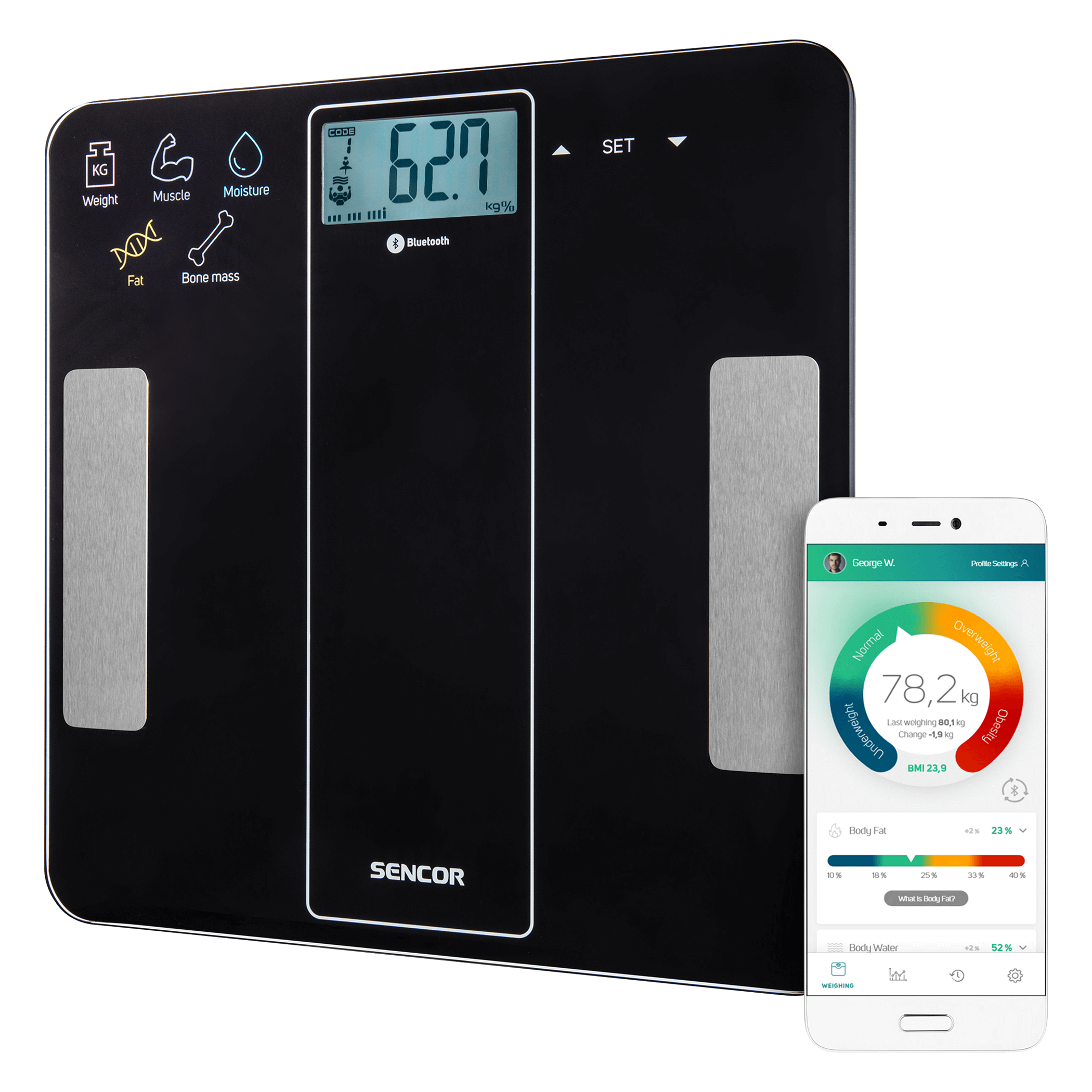 يقيس الدهون والمياه في الجسم باستخدام مبدأ تحليل المعاوقة الكهربائية البيولوجية (BIA)